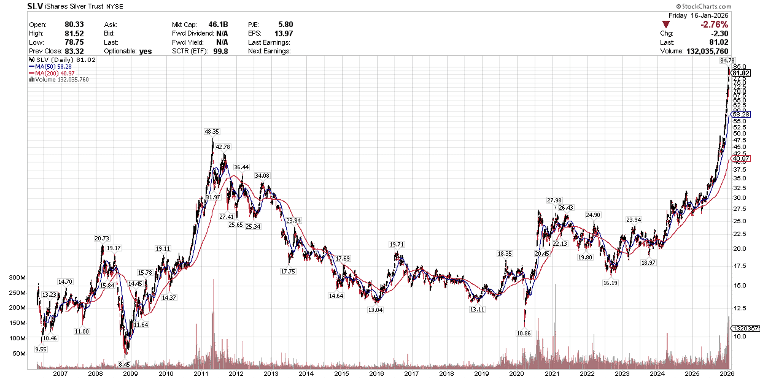 Precious metal prices have soared since last April shortly after President Trump announced his “reciprocal” tariff policy with silver prices more than tripling, due in part to the weakening of the US dollar. Additionally, central banks around the world have been increasing their gold reserves more aggressively, as they diversify their Treasury holdings. Speculatory have piled on. This melt up in gold and silver has been a welcomed development for portfolios that held either as core holdings in a diversified portfolio strategy. Yet on a more cautionary note, this run up has been parabolic to an extent I have not seen since the Great Financial Crisis in 2009 when the Fed implemented unprecedented monetary stimulus by lowering short-term rates to zero and buying record amounts of Treasuries and mortgage-backed securities. The peak came not long after, as the chart below reveals. I think the recent surge may have run its course, as prices appreciation is likely to slow dramatically if not reverse course.